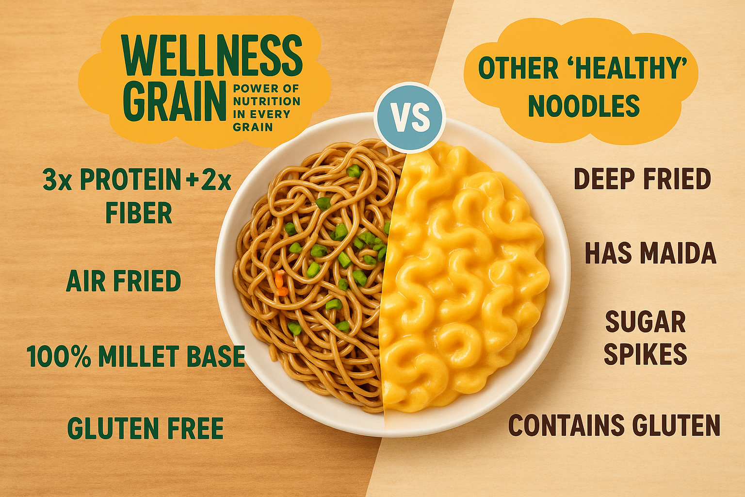 | Attribute | Wellness Grain Millet Noodles | Regular Noodles |